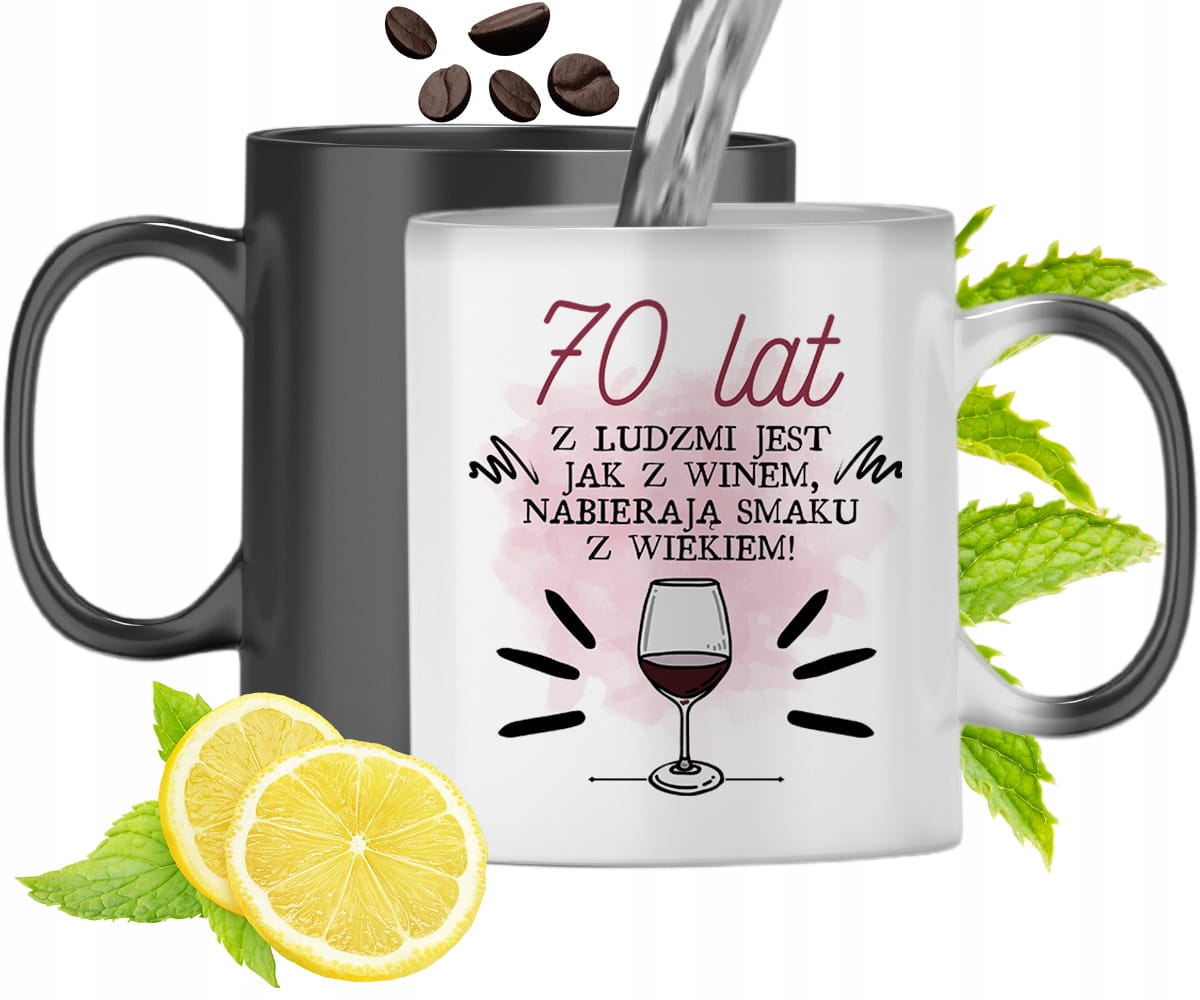 Kubek Magiczny Na Urodziny 70Te Zmieniający Kolor Z Nadrukiem Ze Zdjęciem